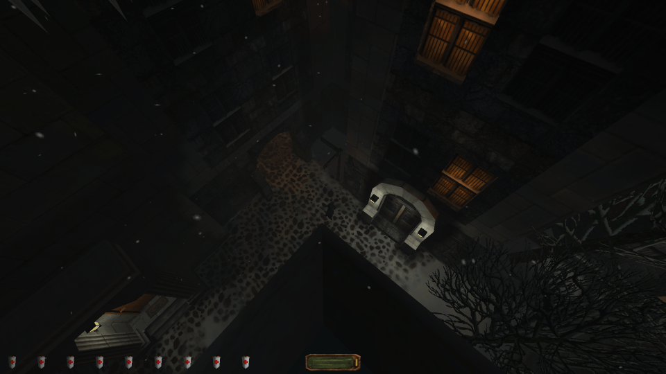 Gathering begins like the best Thief missions do: by establishing an atmosphere that sucks you in. After a moody, Thief-y intro cut scene you begin in a pleasant, snow-laden cityscape with complementary ambient sound and a monologue from player-character Dante. Depending on the turns you take you will soon overhear a guard conversation, voiced by the excellent Loanstar, which references the bear pits dialogue. All this lets you know you are in for a treat.