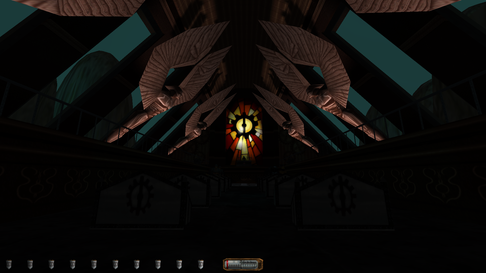 I have to remind myself that there’s a faulty AI commanding a team of murderous machines here. It’s hardly a time to be admiring Mechanist art, especially since I’m Garrett. He would only see the smiling face of a fence in any religious artifacts he lays eyes on. That, and the Mechanists are insane, murderous techno-zealots. But their art is so pretty!